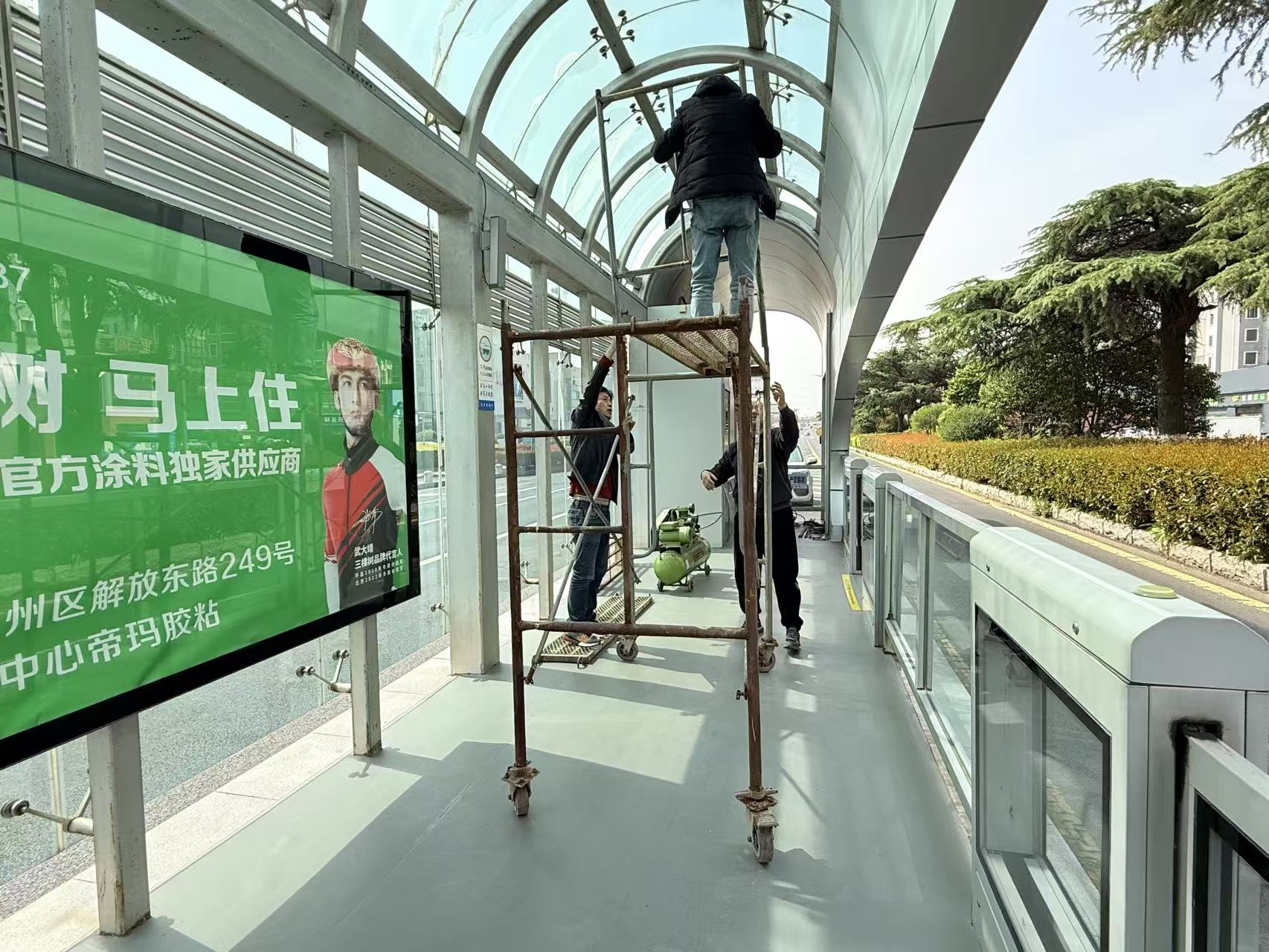 公交站臺(tái)是城市的窗口,為進(jìn)一步改善市民候車環(huán)境,扮靚城市窗口,提升城市文明形象,近日,公交集團(tuán)快速公交對(duì)BRT一號(hào)線公交站臺(tái)開展噴漆翻新工作,解決了站臺(tái)因使用年限較長(zhǎng)而出現(xiàn)銹蝕及油漆脫落等問題,讓站臺(tái)煥然一新,為市民營(yíng)造良好的出行環(huán)境。