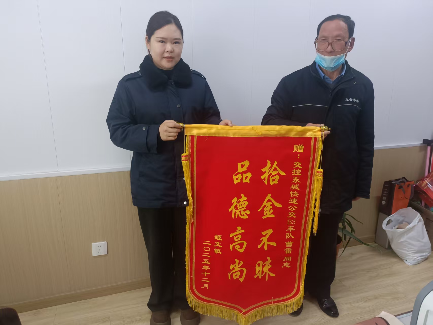 這面遲來的錦旗背后,是兩個普通人之間溫暖的互動:一位是盡職盡責的公交駕駛員,一位是孝順感恩的普通市民。在這個冬日里,他們的故事如暖流般溫暖人心,彰顯了城市文明的新風尚。