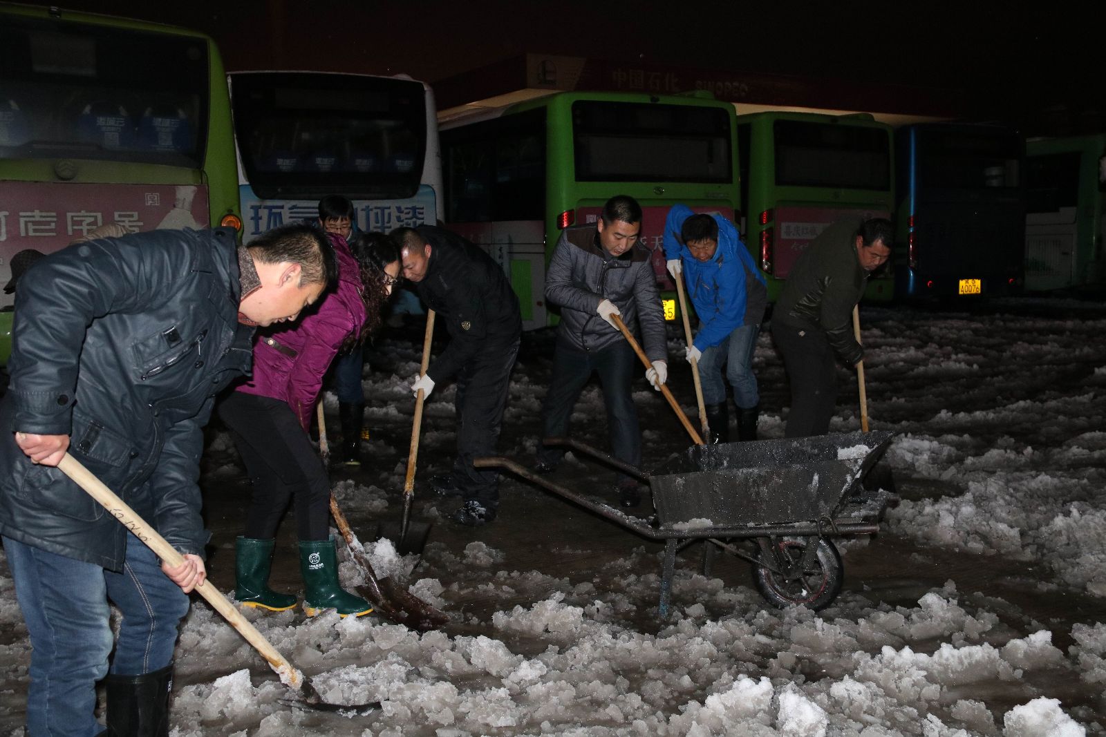 經(jīng)過一天的雪花紛飛,嚴(yán)寒和道路積雪成冰,給交通出行造成嚴(yán)重安全隱患。雪后及時(shí)清掃積雪是公司形成的一個(gè)良好習(xí)慣和作風(fēng)。為確保正常有序收銀、車輛安全回場停放,防止積雪結(jié)冰,當(dāng)晚,公交東部公司領(lǐng)導(dǎo)班子帶領(lǐng)管理人員冒著嚴(yán)寒、拿起鐵锨、鏟雪板、掃把等掃雪工具,清掃停車場站的厚厚積雪。通過此次掃雪,體現(xiàn)了公司全體干群吃苦耐勞、團(tuán)結(jié)向上的精神風(fēng)范!