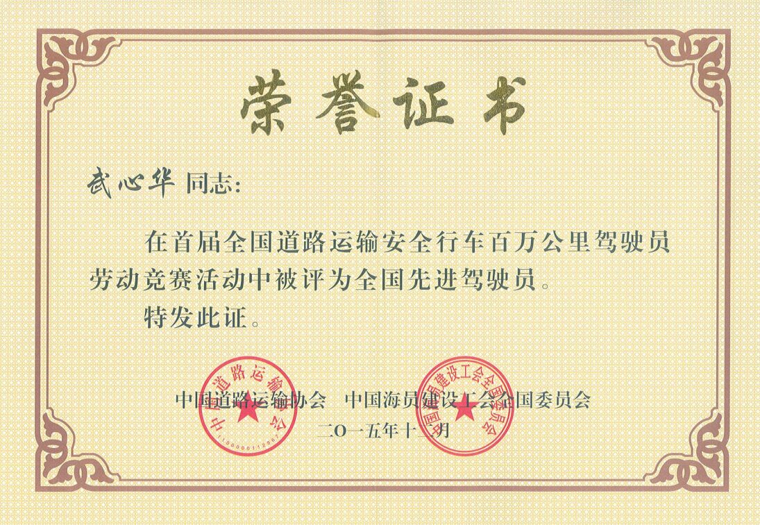 近日,海通公交公司沈濤、武心華2名駕駛員被全國道路運輸安全行車百萬公里駕駛員勞動競賽組委授予“全國先進駕駛員”榮譽稱號。目前,公司已有26名安全行車達百萬公里駕駛員,2016年公司將一如既往的加強安全生產(chǎn)工作,開展“強化基層、基礎、基本功”的建設,為全市人民提供“安全、文明、優(yōu)質(zhì)”的出行環(huán)境。