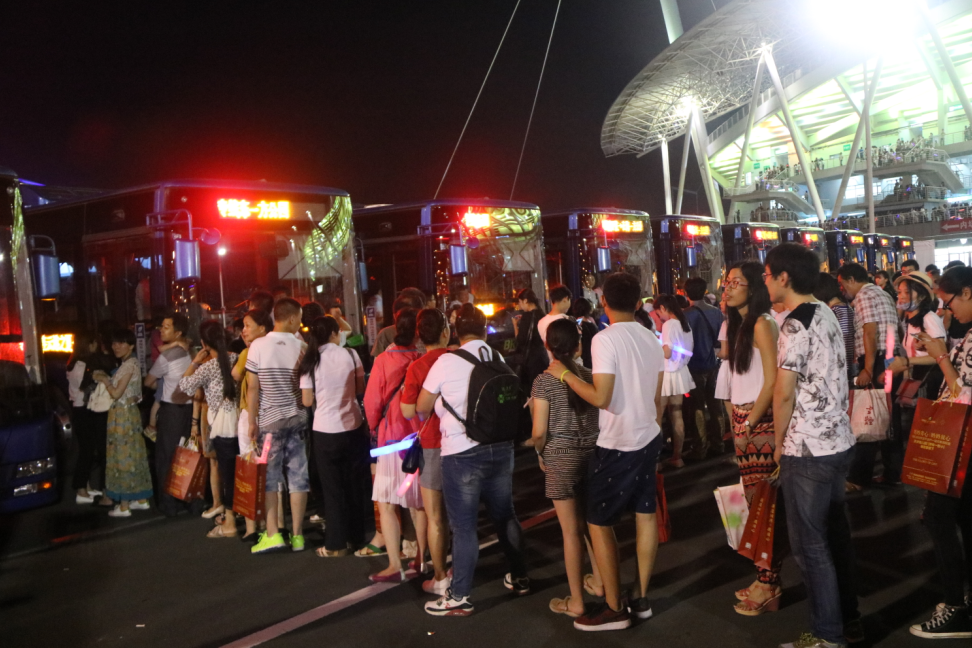 演唱會(huì)散場(chǎng)后,海通公交開通了5條直通車,分別途經(jīng)市區(qū)解放路、蒼梧路、海連路、朝陽路、港城大道等主干道,同時(shí)對(duì)BRT一號(hào)線進(jìn)行了班次加密。公司領(lǐng)導(dǎo)、各部門、各運(yùn)營(yíng)單位主要負(fù)責(zé)人一同到達(dá)現(xiàn)場(chǎng),共同進(jìn)行現(xiàn)場(chǎng)觀眾的輸送工作,確保了2016“連云港之夏”交通運(yùn)輸保障工作的圓滿完成。經(jīng)統(tǒng)計(jì),晚間散場(chǎng)期間,公司實(shí)際投放運(yùn)力55臺(tái),運(yùn)送觀眾約3750人次。