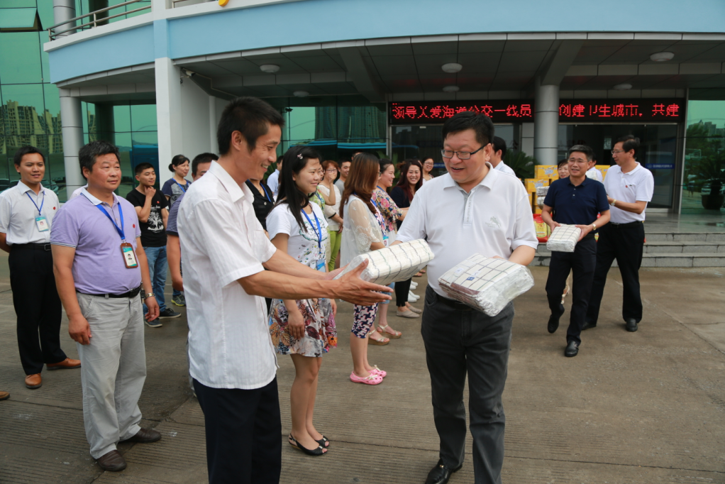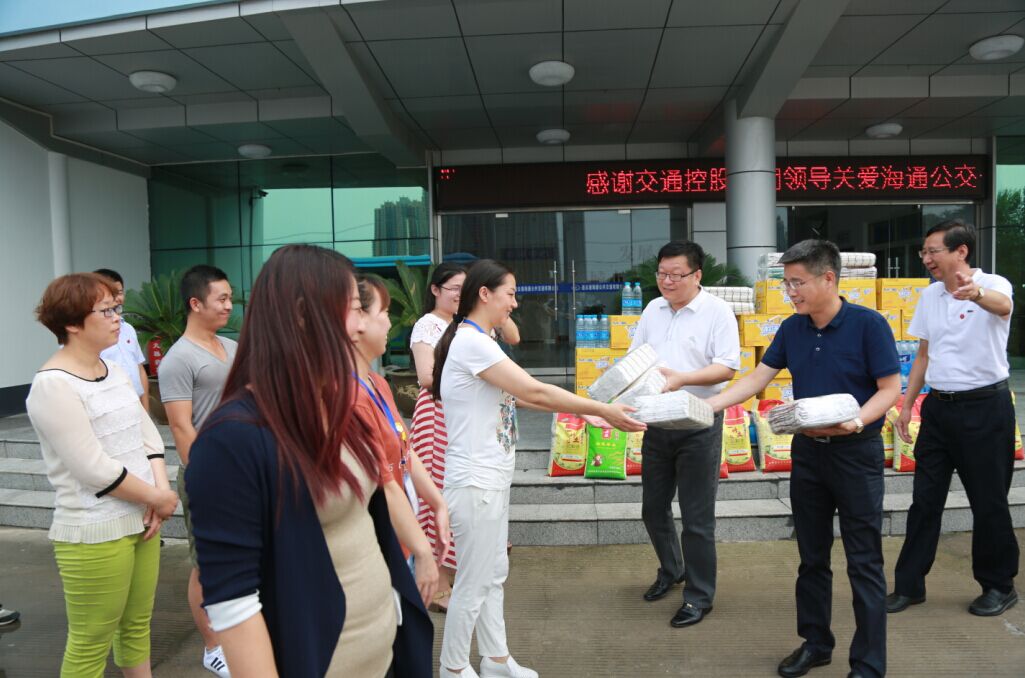 7月26日下午,交通控股集團黨委書記、董事長劉永能,黨委副書記、總經(jīng)理仲偉濤,工會主席王中永等集團領(lǐng)導(dǎo)冒著高溫來到海通公交公司,親切看望慰問了高溫下堅守崗位的公交一線員工,為他們送去綠豆、白糖、純凈水、飲料等防暑降溫物品,并叮囑他們注意防暑降溫,以良好的狀態(tài)投入到工作中去,做好安全服務(wù)工作,服務(wù)好廣大乘客。劉永能等領(lǐng)導(dǎo)叮囑隨行的公交公司領(lǐng)導(dǎo),一定要關(guān)心員工的身心健康,尤其要做好夏季的防暑降溫工作,把“送清涼、送安全、送法律”活動落到實處,讓廣大員工真正感受到組織的關(guān)愛。