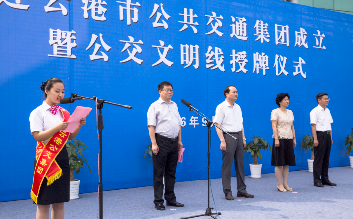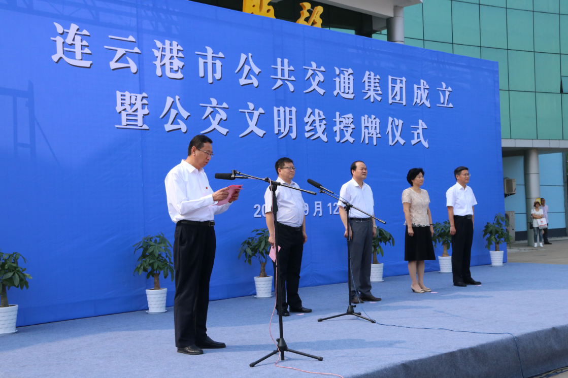 9月12日上午10時(shí),連云港市公共交通集團(tuán)成立暨四條文明線授牌儀式在公交集團(tuán)院內(nèi)成功舉行,標(biāo)志著我市公交事業(yè)發(fā)展進(jìn)入了新起點(diǎn),踏上了新征程。副市長(zhǎng)尹哲強(qiáng)出席活動(dòng)并為市公共交通集團(tuán)揭牌,市財(cái)政局局長(zhǎng)孫宗鳳、市發(fā)改委、經(jīng)信委、國(guó)資委、公安局、交通局、國(guó)土局、規(guī)劃局、城鄉(xiāng)建設(shè)局、運(yùn)管處、交警支隊(duì)、公安公交分局等市相關(guān)部門負(fù)責(zé)人以及市交通控股集團(tuán)領(lǐng)導(dǎo)、部門及權(quán)屬單位負(fù)責(zé)人、市公共交通集團(tuán)員工代表參加活動(dòng)。市交通控股集團(tuán)黨委書記、董事長(zhǎng)劉永能主持活動(dòng)儀式。