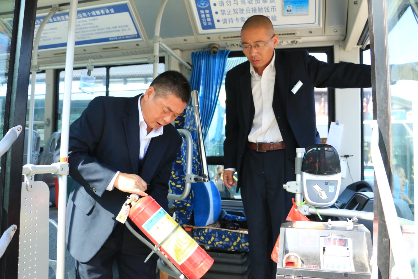 公交快速公司安全科在車(chē)隊(duì)、場(chǎng)站做到發(fā)現(xiàn)問(wèn)題現(xiàn)場(chǎng)整改,做到隱患無(wú)死角,人員無(wú)遺漏;安管人員在BRT站臺(tái)除了常規(guī)檢查外還對(duì)站務(wù)員進(jìn)行突發(fā)事件應(yīng)急能力再培訓(xùn),務(wù)必能夠做到第一時(shí)間用正確方法處置問(wèn)題;安管人員在各始發(fā)站點(diǎn),利用發(fā)車(chē)間隙,檢查車(chē)輛玻璃自爆器是否安裝到位,并對(duì)車(chē)載滅火器維護(hù)情況進(jìn)行檢查;公司安全經(jīng)理崔建兵帶隊(duì),對(duì)駕駛員滅火器使用方法進(jìn)行抽查,并對(duì)新入職駕駛員進(jìn)行再培訓(xùn)。