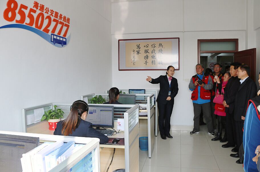 來源:綜合辦公室 作者:倪子棠 為全面展示公交集團(tuán)近年來改革發(fā)展取得的成績,11月5日,按照市交通控股集團(tuán)開展“國企開放日”活動(dòng)安排,邀請(qǐng)了市人大代表、政協(xié)代表、媒體記者、市民代表等各界人士約60人走進(jìn)公交,交通控股集團(tuán)工會(huì)主席王中永、辦公室主任曹素玲、公交集團(tuán)總經(jīng)理劉佃華、副總經(jīng)理趙立喜、羅軍及相關(guān)部室負(fù)責(zé)人參加活動(dòng)。 活動(dòng)中,參觀人員一行先后來到公交集團(tuán)信息指揮中心、收銀中心、新華充電站、充電站監(jiān)控中心及客服中心等地點(diǎn),總經(jīng)理劉佃華熱情為大家介紹BRT建設(shè)運(yùn)營、BRT線路、站臺(tái)實(shí)時(shí)監(jiān)控、新能源車輛運(yùn)用、公交充電站建設(shè)發(fā)展、各充電站智能監(jiān)控等相關(guān)情況;在新華充電站,現(xiàn)場(chǎng)為參觀人員演示電動(dòng)公交車如何充電,讓市民進(jìn)一步了解到新能源電動(dòng)公交車低碳環(huán)保節(jié)能等優(yōu)勢(shì);在收銀中心,參觀人員了解到公交每天不僅要面臨大量的硬幣清點(diǎn)、兌現(xiàn)等繁重工作任務(wù),同時(shí)也存在著收到大量的殘幣紙幣假幣等無法兌換的困境;在公交客服中心,通過客服人員熱情細(xì)致的講解,了解到公交集團(tuán)通過服務(wù)熱線平臺(tái)如何為廣大市民提供優(yōu)質(zhì)、耐心、細(xì)致服務(wù),進(jìn)一步方便市民出行。 通過“國企開放日”活動(dòng),廣大市民走進(jìn)公交民生服務(wù)一線,深入了解到公交集團(tuán)近年來在信息化、科技化、環(huán)保新能源及提升服務(wù)等方面取得的成績,為打造“科技公交、綠色公交、智慧公交、優(yōu)秀公交、人文公交”所做的努力和貢獻(xiàn),為下一步推動(dòng)公交更好更快發(fā)展提供了動(dòng)力。