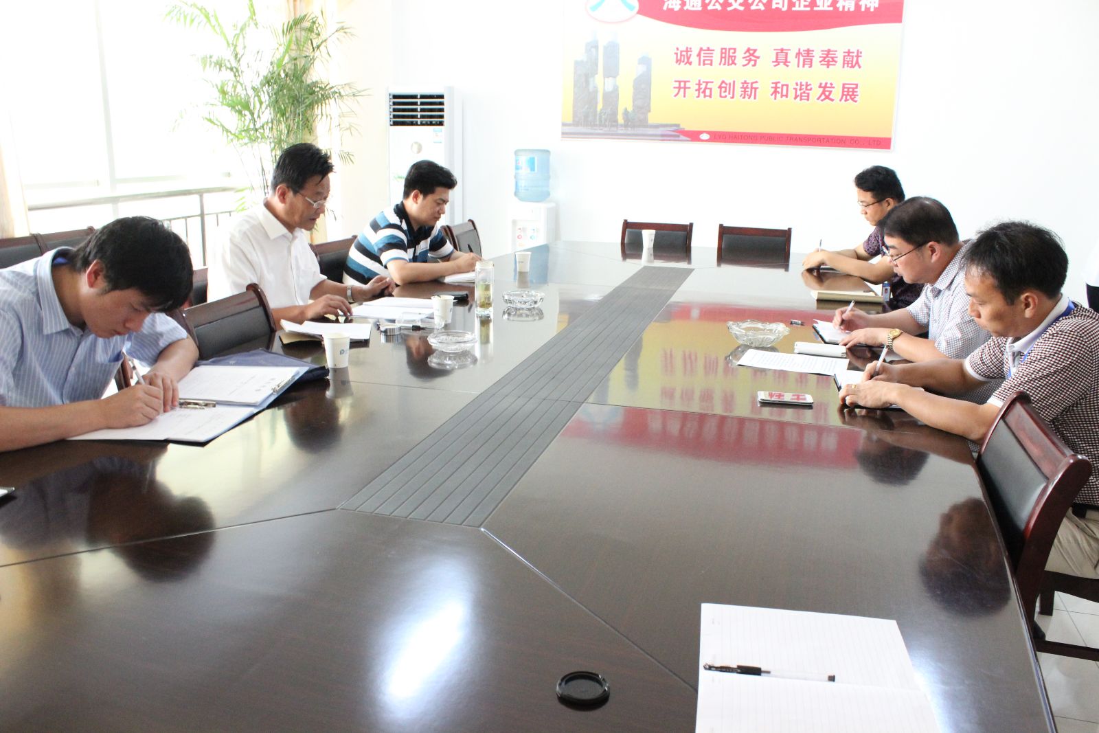 海通公交副總經(jīng)理于京濤專(zhuān)題匯報(bào)了公司安全生產(chǎn)標(biāo)準(zhǔn)化申報(bào)及推進(jìn)、百日安全生產(chǎn)大檢查開(kāi)展、車(chē)輛安全生產(chǎn)大檢查、消防安全大檢查、高溫天氣安全行車(chē)及應(yīng)對(duì)防范工作情況、BRT站臺(tái)及常規(guī)公交汛期防洪等工作情況,胡部長(zhǎng)一行對(duì)公司的安全工作給予了肯定,并對(duì)安全生產(chǎn)標(biāo)準(zhǔn)化創(chuàng)建工作提出了寶貴意見(jiàn),并強(qiáng)調(diào)以安全標(biāo)準(zhǔn)化為抓手,內(nèi)緊外松,通過(guò)扎實(shí)的安全管理工作,確保萬(wàn)無(wú)一失,確性過(guò)關(guān)。