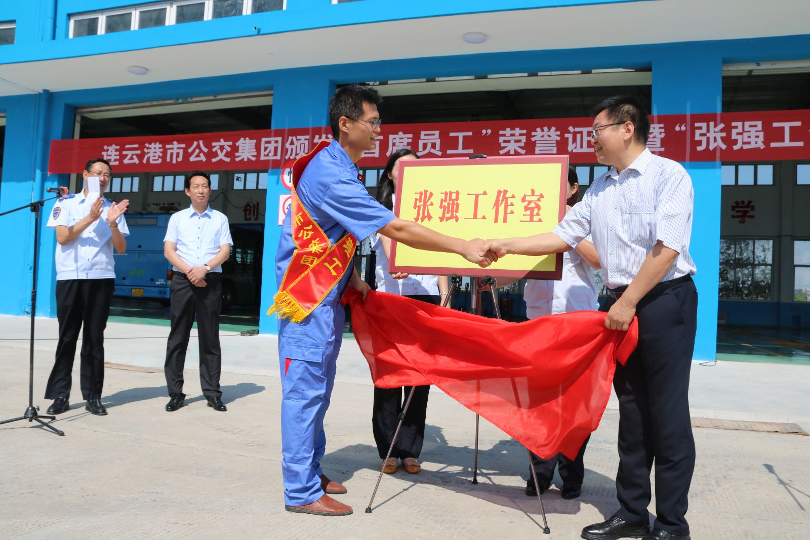 為充分發(fā)揮員工在公交集團(tuán)創(chuàng)新發(fā)展中的主力軍作用,弘揚(yáng)勞動(dòng)模范的偉大品格和工匠精神,提升員工隊(duì)伍的整體素質(zhì),促進(jìn)企業(yè)的良性發(fā)展。9月15日上午,公交集團(tuán)在大浦保養(yǎng)廠頒發(fā)“首席員工”證書(shū)暨“張強(qiáng)工作室”揭牌儀式。公交集團(tuán)黨委書(shū)記、總經(jīng)理劉佃華主持,交通控股集團(tuán)黨委書(shū)記、董事長(zhǎng)劉永能、工會(huì)主席王中永、工會(huì)副主席張曉紅,公交集團(tuán)中層以上干部、職工代表張強(qiáng)班組、各單位職工代表參加儀式。