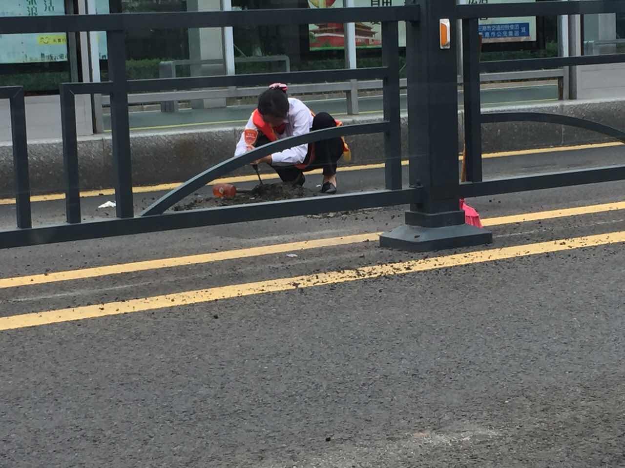 二號線的組長范娟,無論刮風(fēng)下雨,寒冬酷暑,都能在站臺里面看到她忙碌的身影,平時她還利用休息時間,去無人站臺檢查設(shè)施設(shè)備,打掃衛(wèi)生,快車道被車輛剎車碾壓出現(xiàn)了一個大坑,她考慮到不把坑盡快填補起來,會影響車輛進站的平穩(wěn),也會刮壞車輛的底盤,外面還是烈日當(dāng)頭,太陽把黑色的瀝青路面炙烤的發(fā)亮,她卻拿起鐵锨修補起了路面,一鐵锨一鐵锨的鏟平,汗水一次又一次的從她的臉頰滑落。