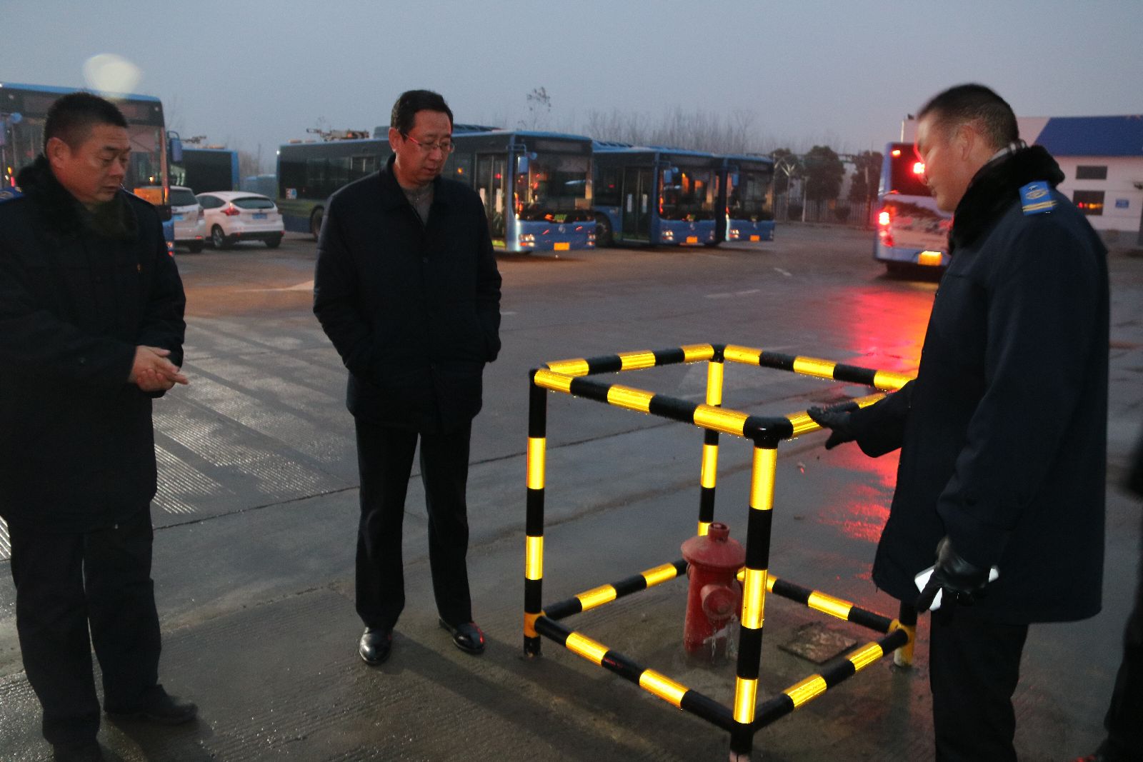 此次檢查以集團(tuán)黨委書記、總經(jīng)理劉佃華為組長,由袁軍、于京濤、趙立喜、羅軍、劉永善等班子成員分別帶隊(duì),安全部門、運(yùn)營單位、維修及充電公司等相關(guān)人員組成的檢查組,采取突擊檢查的方式,深入公交各場(chǎng)站檢查門衛(wèi)在崗、安全交待、消防通道、線路及安全用電情況;維修車間工具分類擺放、倉庫防火措施、乙炔氧氣瓶安全距離及接地裝置是否符合要求;公交車輛技術(shù)狀況、應(yīng)急逃生及消防設(shè)施設(shè)備是否齊全有效;充電站的充電槍、樁體、急停功能、漏電保護(hù);配電房、設(shè)備間的供電系統(tǒng)、絕緣和接地保護(hù)、設(shè)備間距、應(yīng)急照明、警示標(biāo)識(shí)、消防通道、出入口門向和檔板、通風(fēng)設(shè)施是否符合標(biāo)準(zhǔn)規(guī)范等。