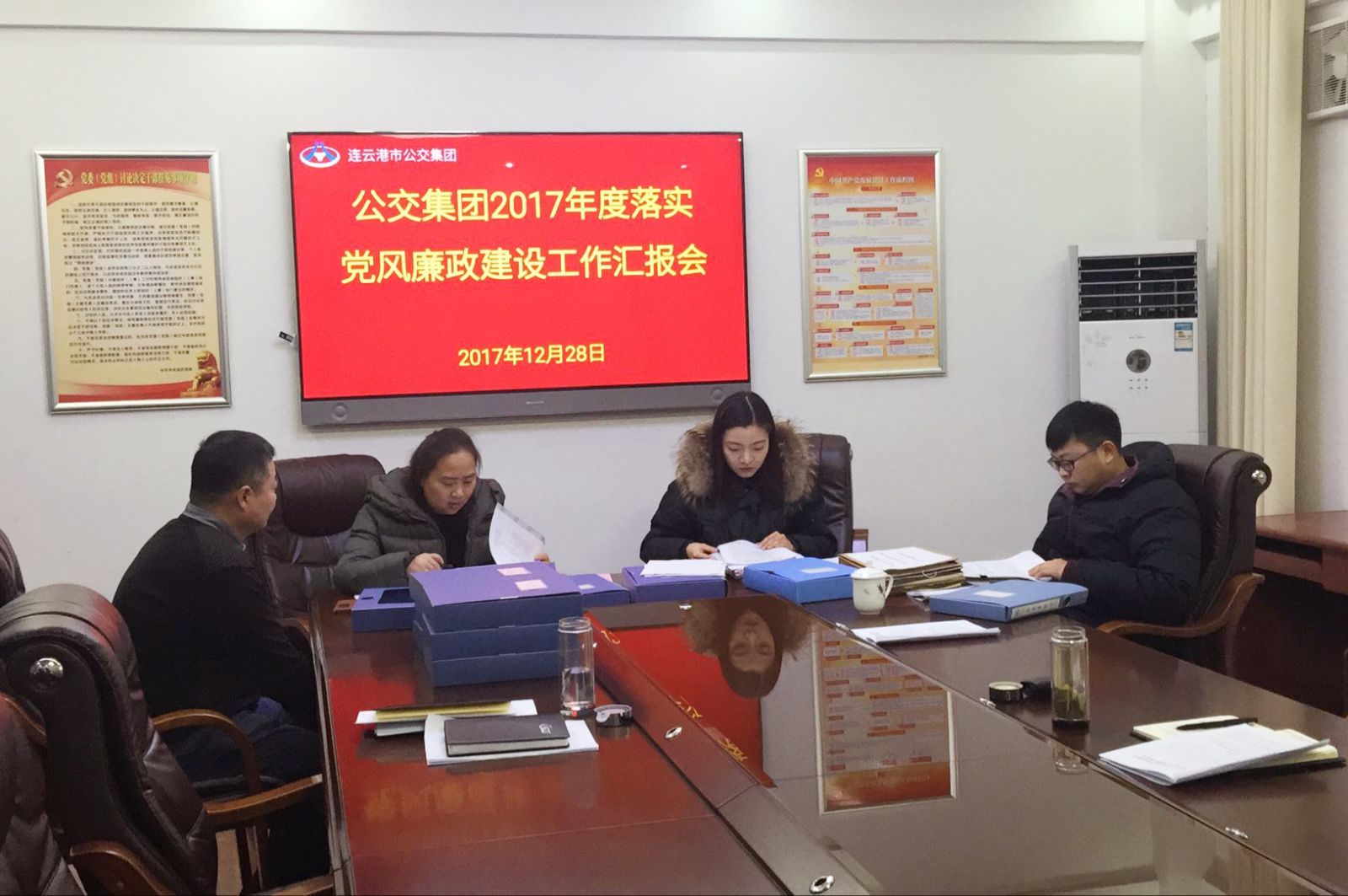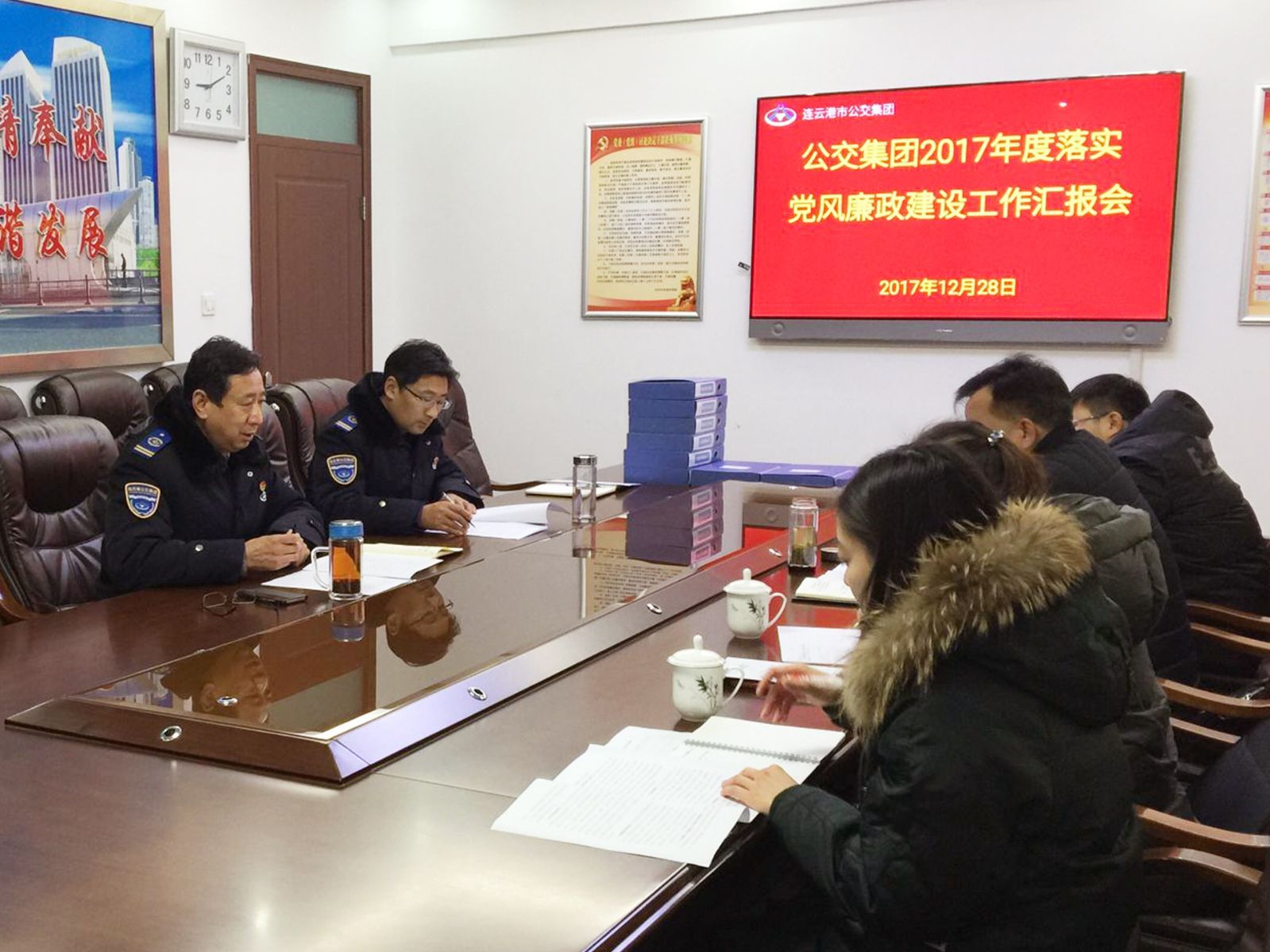 12月28日上午,交通控股集團監(jiān)察室主任王超、副主任韋曉燕帶領考核組,對公交集團2017年度落實黨風廉政建設情況進行檢查考核。公交集團黨委書記、總經(jīng)理劉佃華,黨委委員劉永善及黨群工作部負責人參加匯報會。
