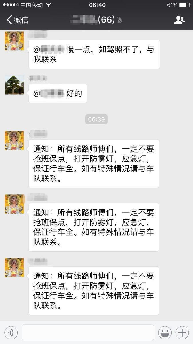 公司也要求服務(wù)熱線人員、駕駛員們耐心向乘客做好解釋,同時提醒廣大市民,由于霧天車速較慢,公交線路可能會出現(xiàn)不同程度的間隔,請廣大乘客諒解,公交集團(tuán)將一如既往地做好優(yōu)質(zhì)服務(wù)工作。