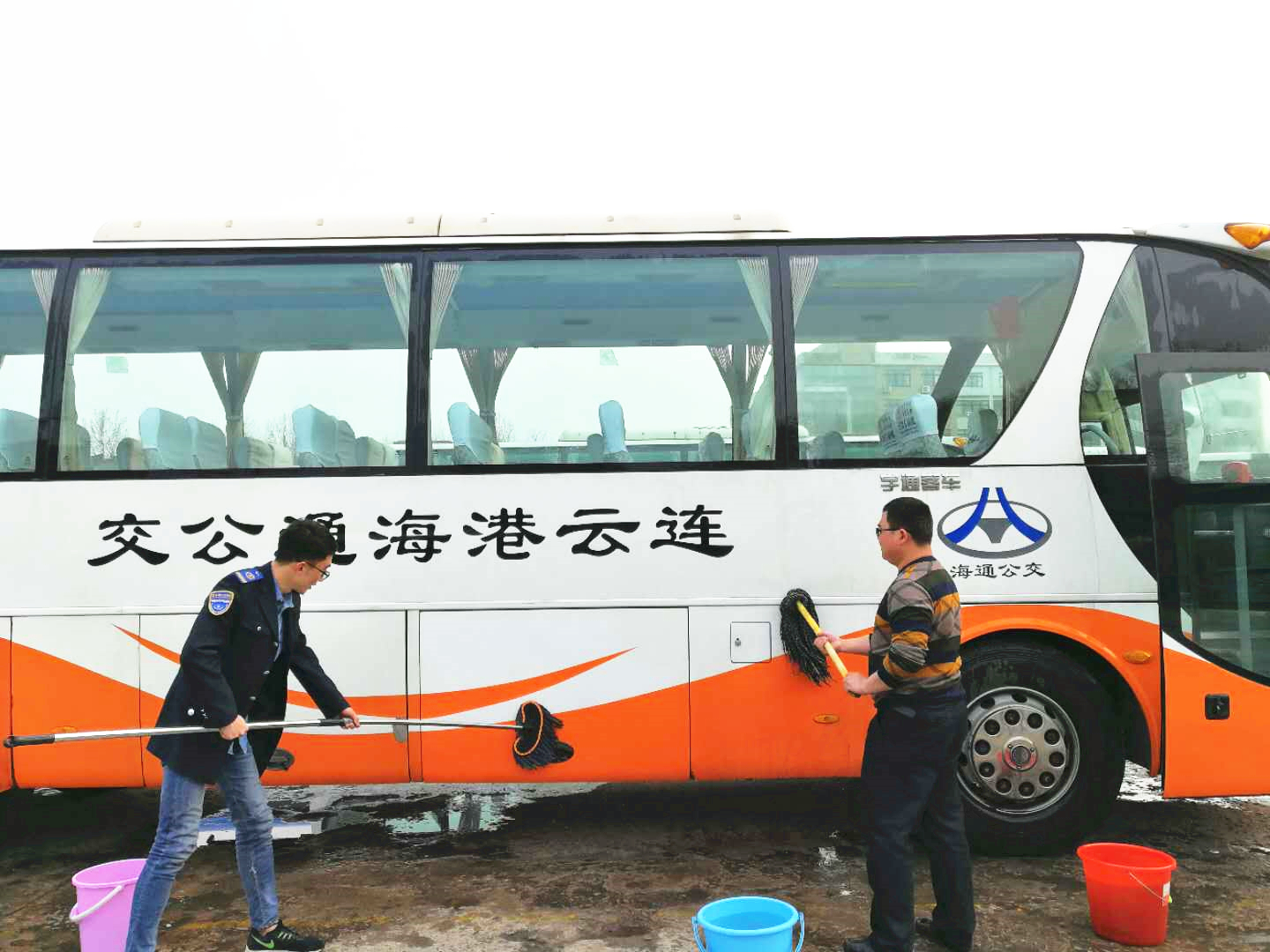 車輛大清洗活動(dòng)在領(lǐng)導(dǎo)班子的合理分工下井然有序地進(jìn)行著:男同志們用水槍將車輛周身沖洗干凈,女同志們用準(zhǔn)備好的抹布、掃帚、水桶、拖把等清洗工具,將車廂內(nèi)玻璃、扶手、座椅、地面等打掃得干干凈凈。看著一臺(tái)臺(tái)車輛煥然一新,大家臉上揚(yáng)起了燦爛的笑容。