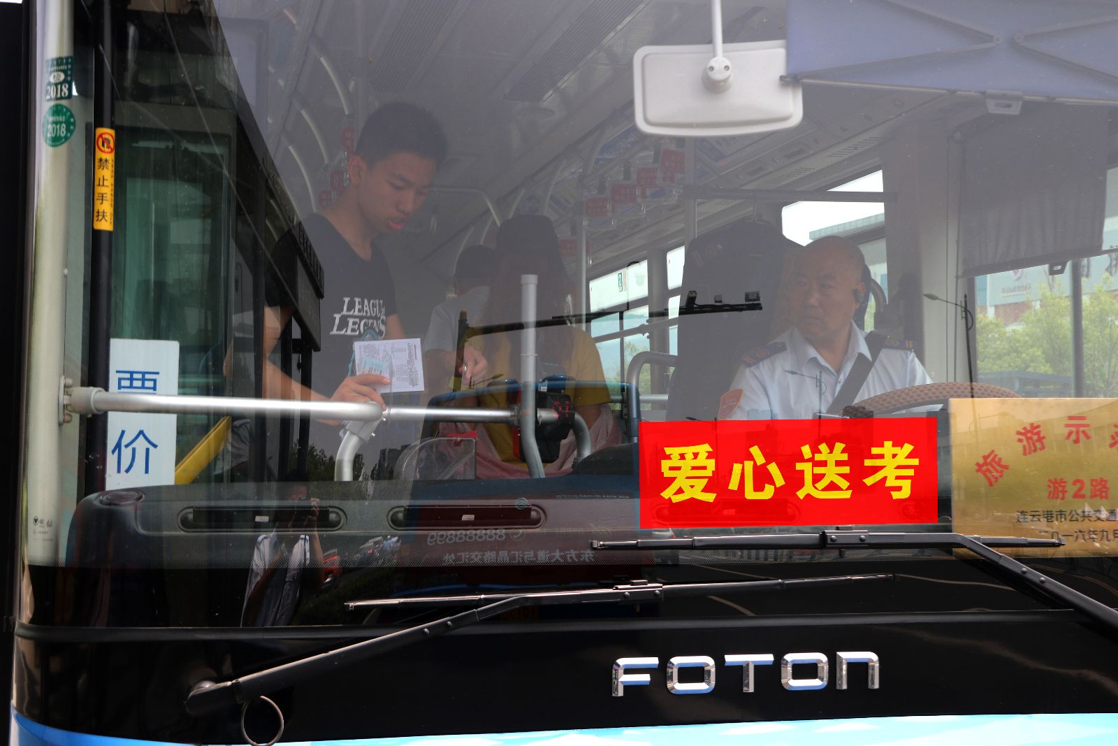 2018年高考期間,為了給港城廣大考生提供方便、快捷的公交服務(wù),公交集團(tuán)海通公交精心部署考試期間營運(yùn)組織和安全服務(wù)工作,調(diào)派素質(zhì)高、責(zé)任心強(qiáng)、駕駛技術(shù)嫻熟的駕駛員,開展公交送考活動,為廣大考生保駕護(hù)航,高考期間,考生憑準(zhǔn)考證可免費(fèi)乘坐所有公交車輛。