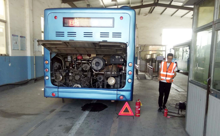 本次年檢工作從8月初開始,共檢驗61臺天燃氣車輛(其中包含18米海格車輛30臺、12米宇通車輛31臺)。主要檢測內(nèi)容有以下三項:一是檢查發(fā)動機、地盤、車身及其附屬設(shè)備是否清潔、齊全、有效,漆面是否均勻美觀,與初檢是否相符。二是檢驗車輛的制動性、轉(zhuǎn)向操作性、燈光、排氣及其它安全性能是否符合“機動車安全運行技術(shù)條件”的要求。三是檢驗車輛的三角牌、滅火器是否齊全有效,行駛證、號牌、發(fā)動機號及車架號的車輛檔案所有登記是否與車況相符,車輛是否辦理了審批和異動、變更手續(xù)等。