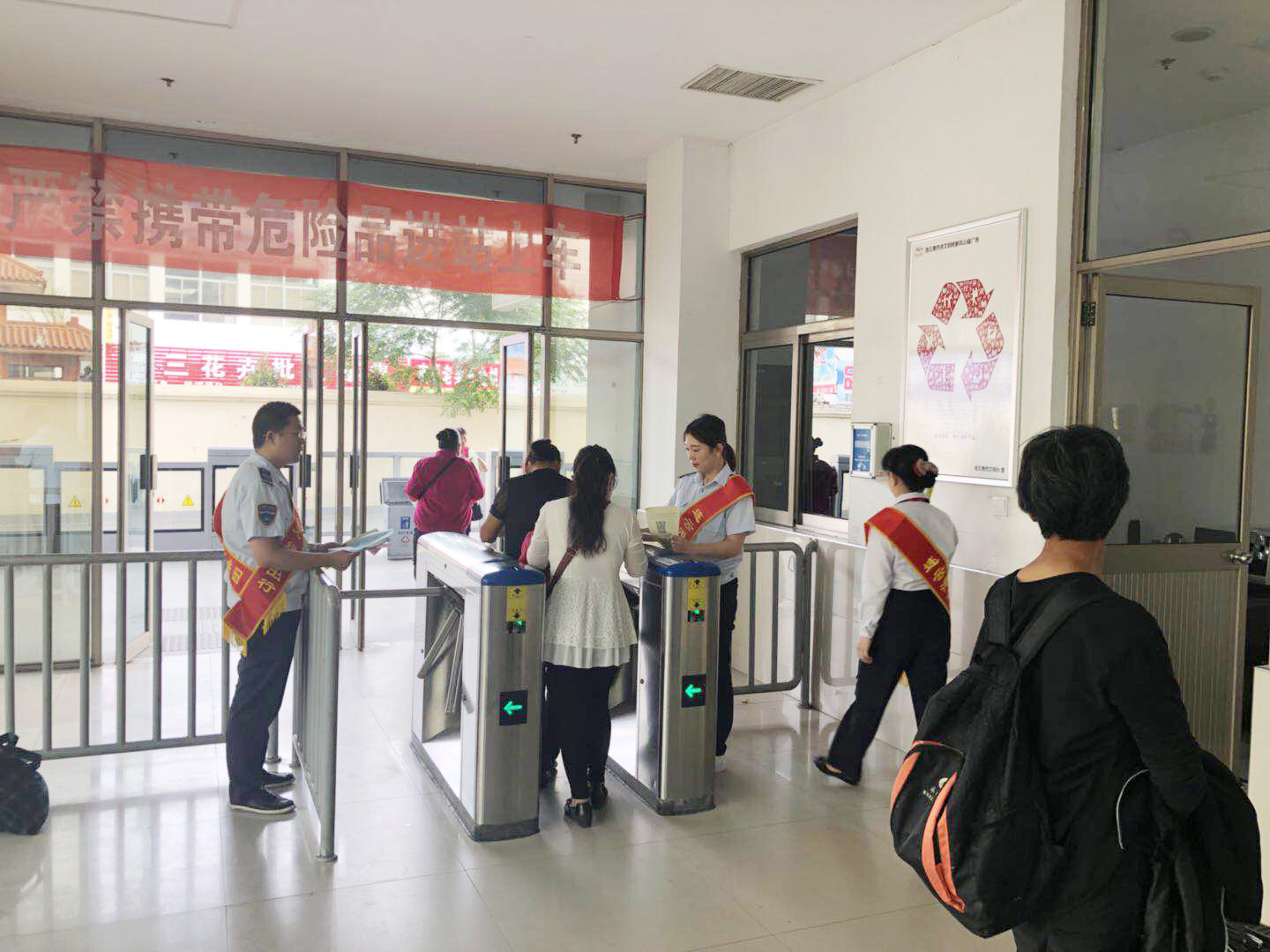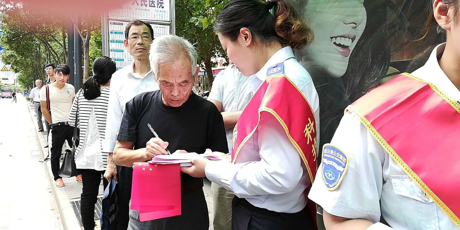 根據(jù)2018年公交出行宣傳周活動(dòng)安排,9月18日上午,公交集團(tuán)組織開(kāi)展了關(guān)愛(ài)殘疾人無(wú)障礙乘車暨公交站點(diǎn)在排隊(duì)文明出行活動(dòng),開(kāi)展公交車輛斑馬線禮讓行人活動(dòng),加強(qiáng)監(jiān)督考核,利用公交車載運(yùn)營(yíng)系統(tǒng),及時(shí)提醒乘客禮讓殘疾人乘車。在公交站點(diǎn)在排隊(duì)文明出行活動(dòng)中,利用海州客運(yùn)站、在海一方公園、市民廣場(chǎng)、龍河廣場(chǎng)4處BRT站臺(tái)以及嘉瑞寶廣場(chǎng)、購(gòu)物中心、第一人民醫(yī)院、蘇寧廣場(chǎng)、海州批發(fā)市場(chǎng)、步行東街、龍河廣場(chǎng)、振興大廈等站8處常規(guī)公交站臺(tái),安排48名志愿者統(tǒng)一服裝、佩戴綬帶,現(xiàn)場(chǎng)發(fā)放2018年公交出行宣傳周倡議書1000余份、乘客滿意度調(diào)查表800余份。