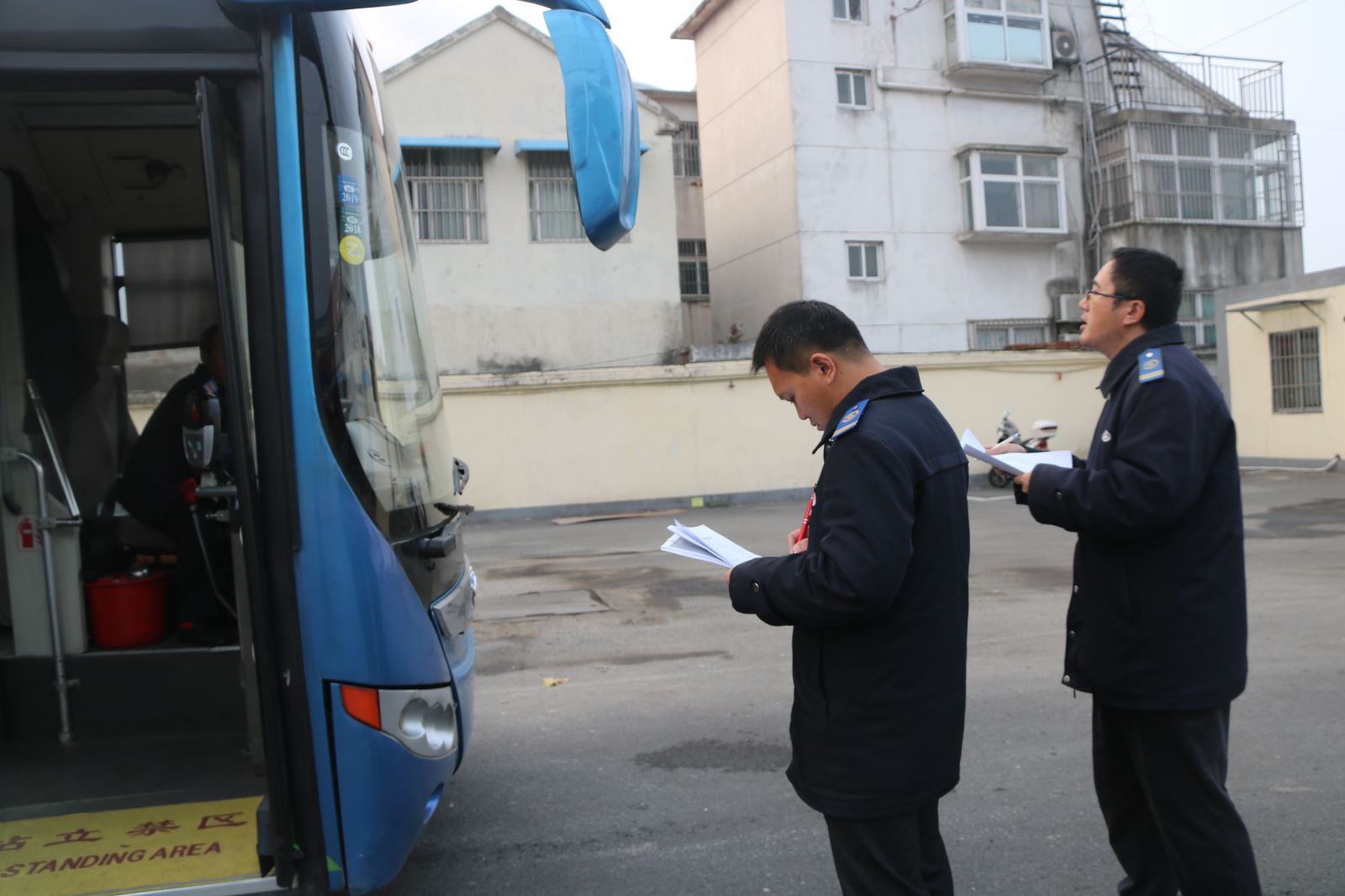 檢查組一行首先到中等專業(yè)學(xué)校站、機(jī)場專線云臺(tái)賓館站、海州批發(fā)市場站、黨校站、海關(guān)站等公交站點(diǎn)對(duì)公交車輛的衛(wèi)生情況,車輛安全標(biāo)識(shí)張貼情況以及駕駛員文明用語和著裝規(guī)范情況進(jìn)行檢查。隨后,檢查組一行來到BRT龍河廣場站、華北橋站、購物中心站等BRT站點(diǎn)對(duì)站亭衛(wèi)生及安全設(shè)施情況進(jìn)行檢查,對(duì)站務(wù)員是否熟悉公交線路換乘和社會(huì)主義核心價(jià)值觀內(nèi)容情況進(jìn)行打分。最后,檢查小組來到海州客運(yùn)站停車場、大港路停車場、園丁小區(qū)停車場對(duì)公交車輛“一日三檢”臺(tái)賬,發(fā)動(dòng)機(jī)艙、發(fā)動(dòng)機(jī)艙衛(wèi)生情況進(jìn)行檢查,確保車輛技術(shù)狀況完好,車內(nèi)設(shè)施齊全有效。