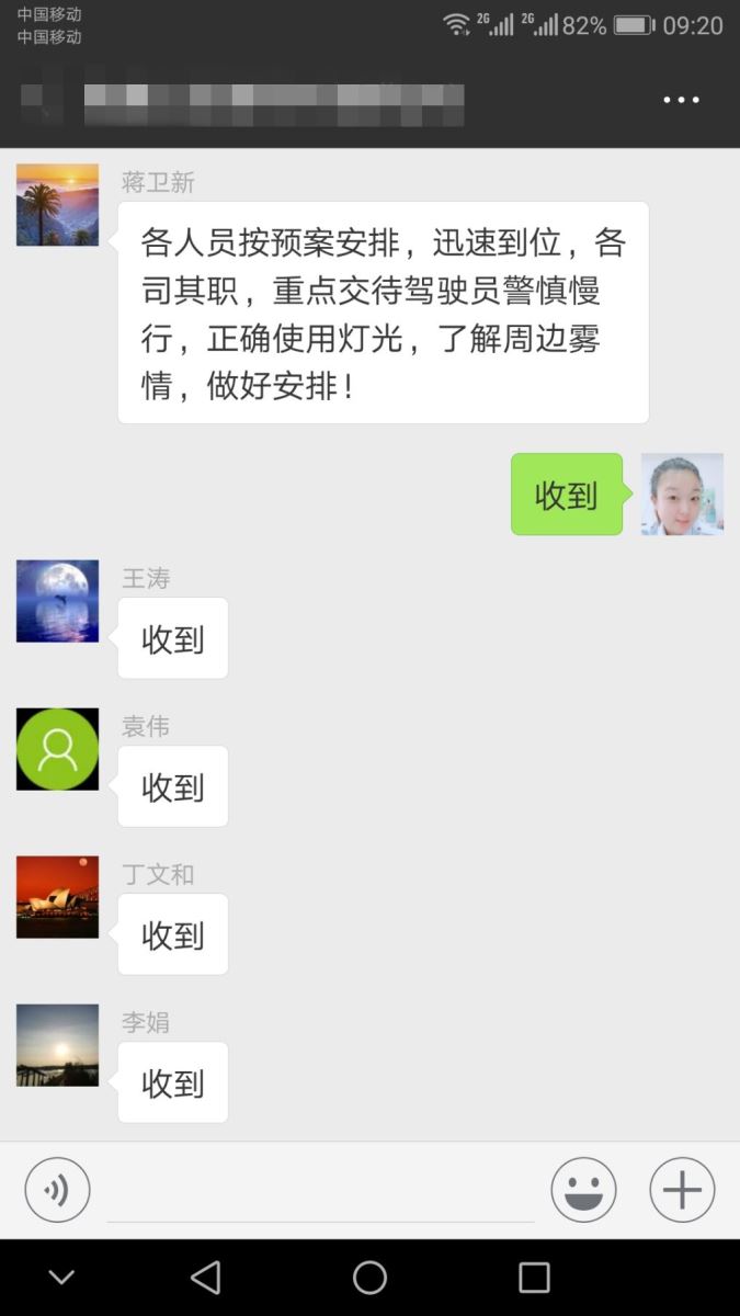根據(jù)預(yù)案安排,各分公司安排人員提前考察各條重點(diǎn)道路的視野能見度,及時(shí)上報(bào)群里,做到路況信息共享;對(duì)即將出場(chǎng)車輛及時(shí)做出實(shí)時(shí)調(diào)度,霧大的重點(diǎn)線路首班車都有一名管理人員跟車上線運(yùn)營,做好安全生產(chǎn)交待;天氣情況略微轉(zhuǎn)好后,也不可有絲毫怠慢,管理人員全部提前到崗對(duì)駕駛員進(jìn)行行車安全交待,做到在線車輛平安行駛。