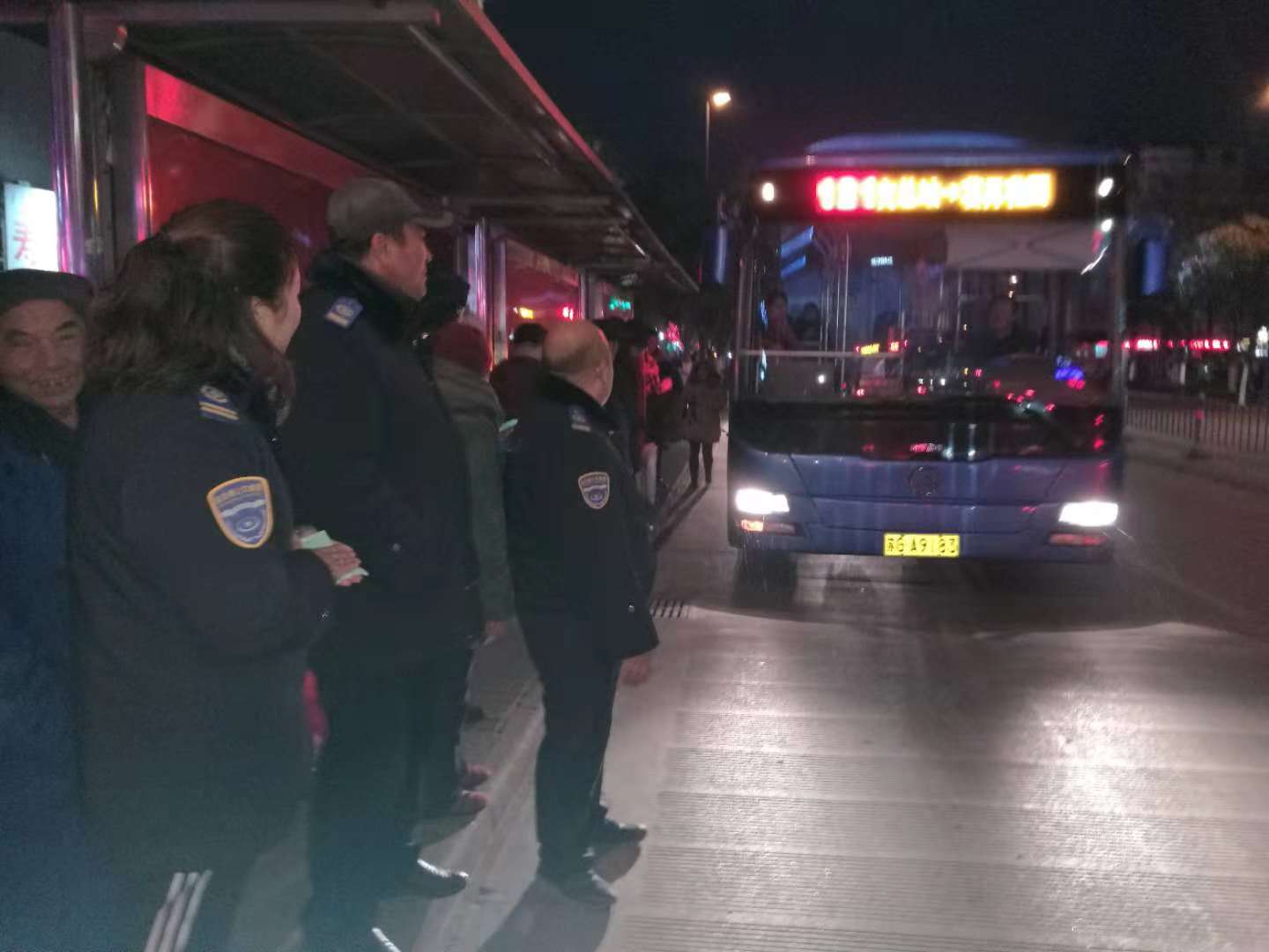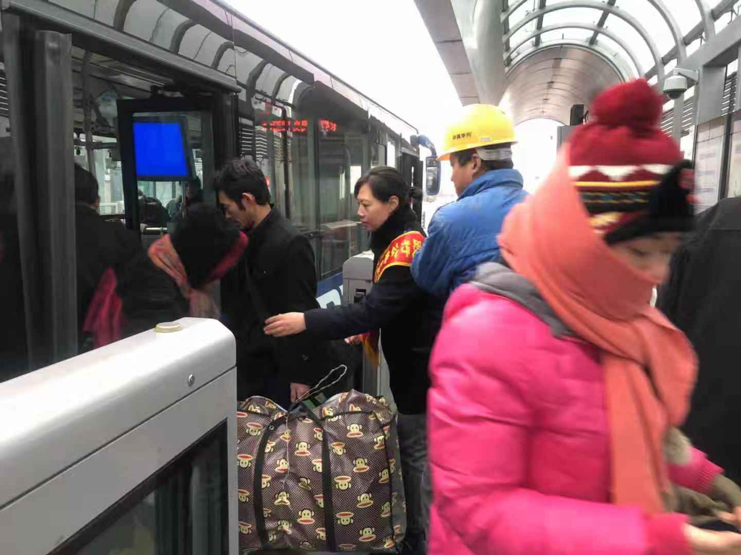 志愿服務(wù)期間,天氣最低溫度達(dá)到了零下7度,12月11日,天空還飄起了雪花,檢查人員不畏嚴(yán)寒,雨雪不改的堅(jiān)守在崗位上,用實(shí)際行動(dòng)助力創(chuàng)文工作的開(kāi)展。志愿者們?cè)谡军c(diǎn)提醒駕駛員著裝規(guī)范、文明用語(yǔ)、禮貌待客,保證車輛衛(wèi)生整潔,文明行車。在客流較多時(shí),志愿者們及時(shí)疏導(dǎo)乘客文明乘車,做好文明引導(dǎo)服務(wù)工作,強(qiáng)化市民交通安全意識(shí),還為他們提供轉(zhuǎn)乘咨詢服務(wù),幫助老弱病殘?jiān)械忍厥獬丝陀行虺塑?、搬運(yùn)行李。通過(guò)大家兩天的努力,不僅贏得了市民的支持和認(rèn)可,乘客們有序乘車,也創(chuàng)文工作深入人心。