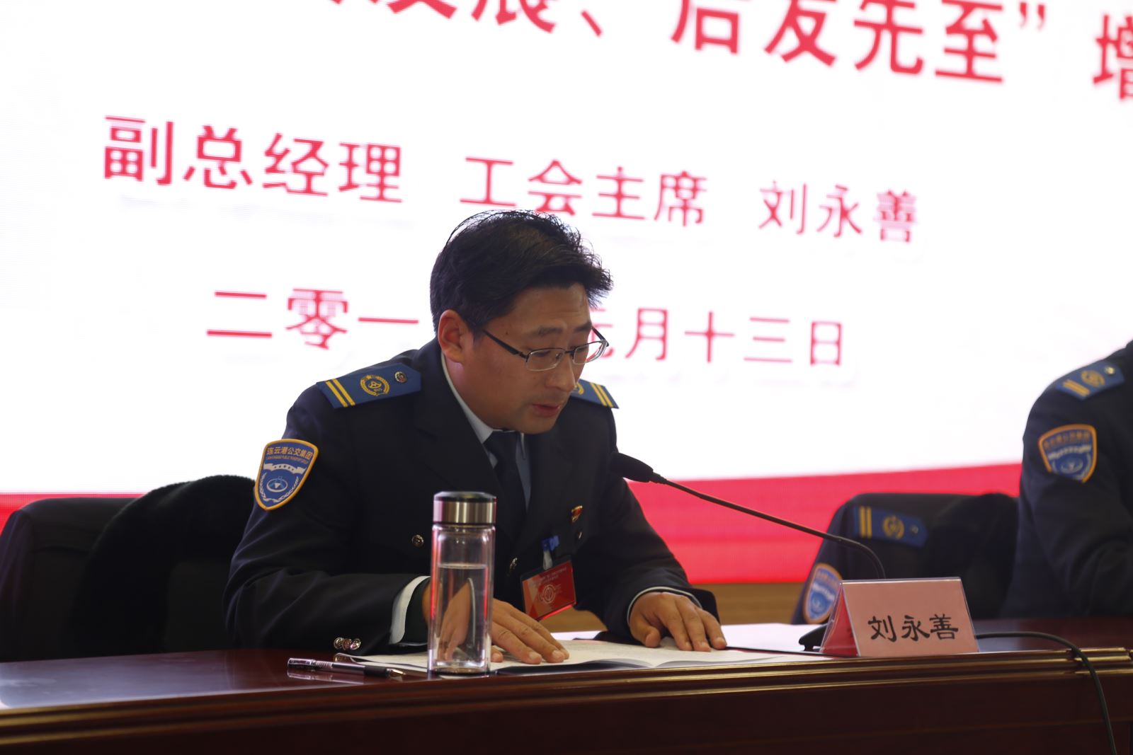 公交集團副總經(jīng)理、工會主席劉永善作《民主增活力,和諧促發(fā)展,為實現(xiàn)公交“高質(zhì)發(fā)展、后發(fā)先至”增添動力》工會工作報告,報告從六個方面總結(jié)了2018年公交集團工會在上級工會和集團黨委的正確領(lǐng)導(dǎo)下所開展的各項工作和取得的成績,感謝上級工會、集團領(lǐng)導(dǎo)和廣大職工一年來對工會工作的關(guān)心和支持。同時又從全面提升職工素質(zhì)、維護職工合法權(quán)益、加強工會自身建設(shè)三個方面對2019年工會工作提出了高標準、嚴要求。