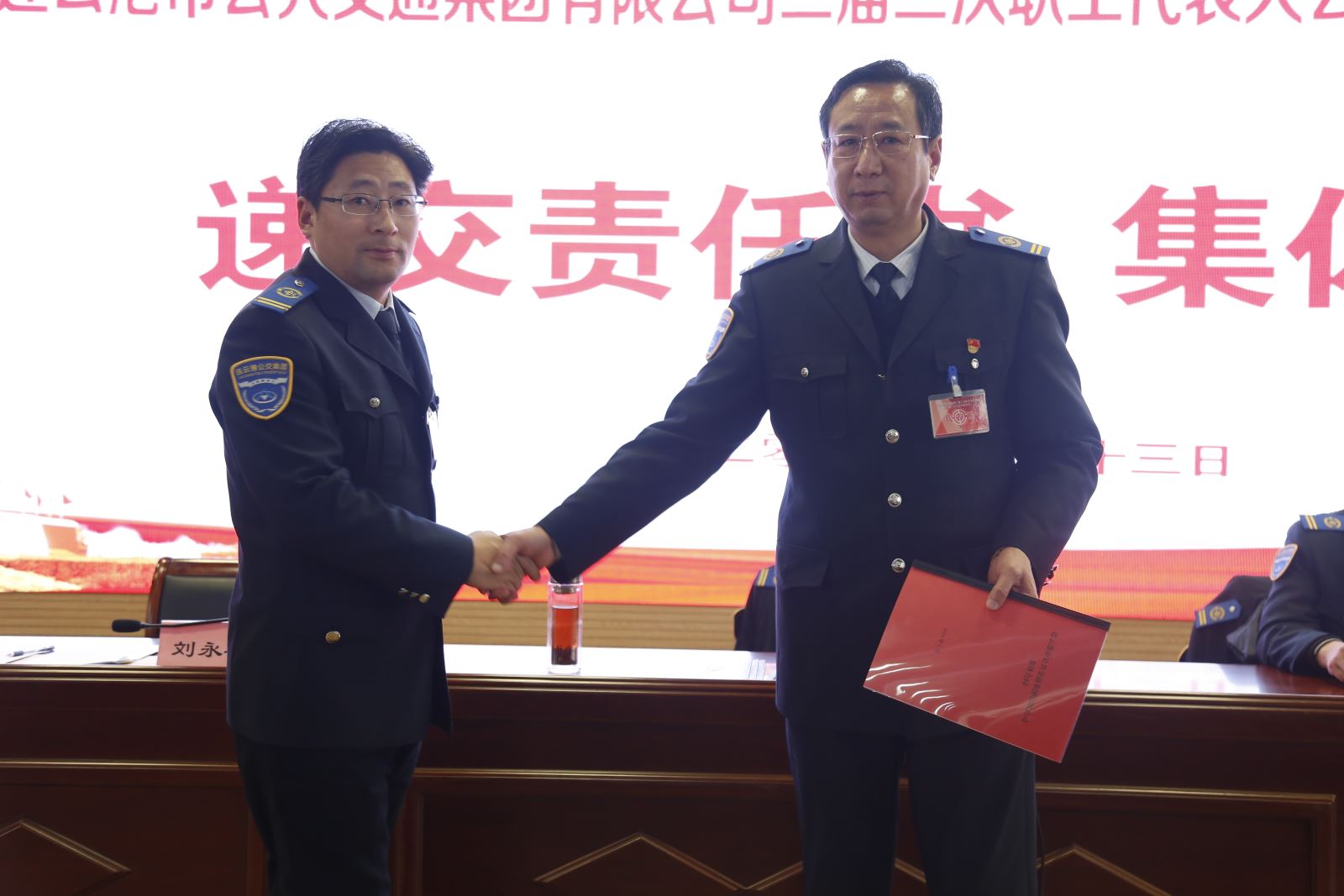 市交通控股集團黨委書記、董事長劉永能代表交通控股集團向大會的勝利召開表示熱烈的祝賀,他對劉佃華作的工作報告給予了肯定,同時指出公共交通服務(wù)業(yè)是交控集團重要的產(chǎn)業(yè)板塊,是衡量城市文明和諧的重要指標。多年來,公交集團積極貫徹落實市委市政府戰(zhàn)略部署和交控集團“十三五”規(guī)劃目標,致力于“暢通、安全、便捷、經(jīng)濟、綠色”的公共出行,全體員工團結(jié)一心,努力拼搏,無論從企業(yè)規(guī)模提量、管理水平、精神文明建設(shè)都實現(xiàn)了質(zhì)的突破,受到社會各界的廣泛關(guān)注和充分肯定,22萬人次的日客流量,25%的出行分擔率,96%的乘客滿意率,充分顯示了公交真正融入了百姓生活,成為了城市和諧發(fā)展不可或缺的部分。他要求,公交集團在取得成績的同時,也要清醒的認識到面臨的矛盾和問題,并針對公交集團2019年的工作提出三點意見:一是冷靜研判形勢,堅定發(fā)展信心。二是不斷探索創(chuàng)新,增強發(fā)展后勁。三是堅持優(yōu)化管理,強化發(fā)展保障。同時要求各位與會代表要帶頭認真學(xué)習(xí)貫徹本次大會精神,切實把各項工作落實到位。