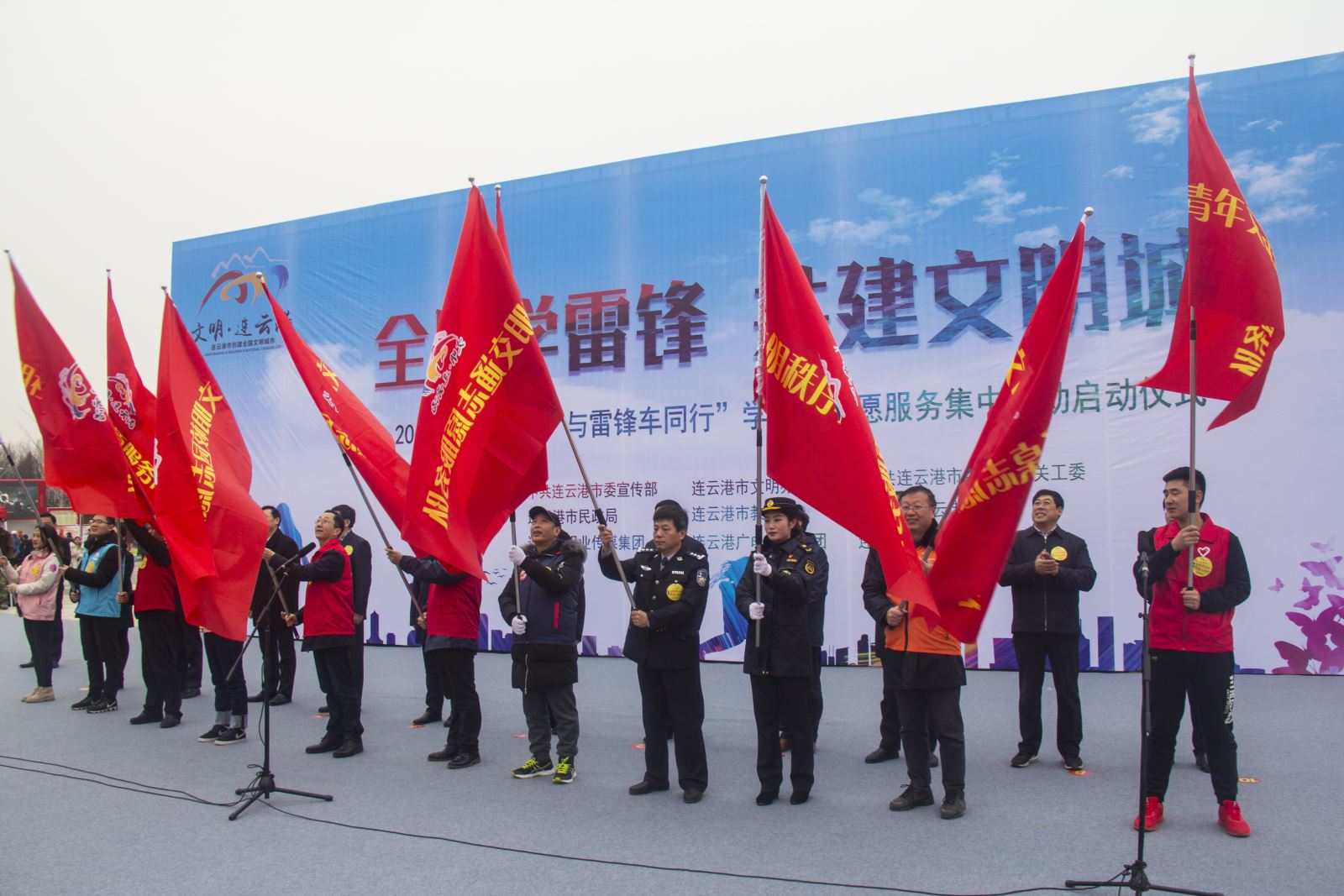 3月2日上午,“全民學(xué)雷鋒 共建文明城”2019年連云港市“與雷鋒車同行”學(xué)雷鋒志愿服務(wù)集中行動(dòng)啟動(dòng)儀式在蒼梧綠園舉行,市領(lǐng)導(dǎo)于麗華、陳書軍、邸占山出席,并為文明旅游、文明交通、文明餐桌等11支志愿服務(wù)隊(duì)代表授旗。公交集團(tuán)組織干部職工42人組成志愿者方隊(duì)參加了儀式。