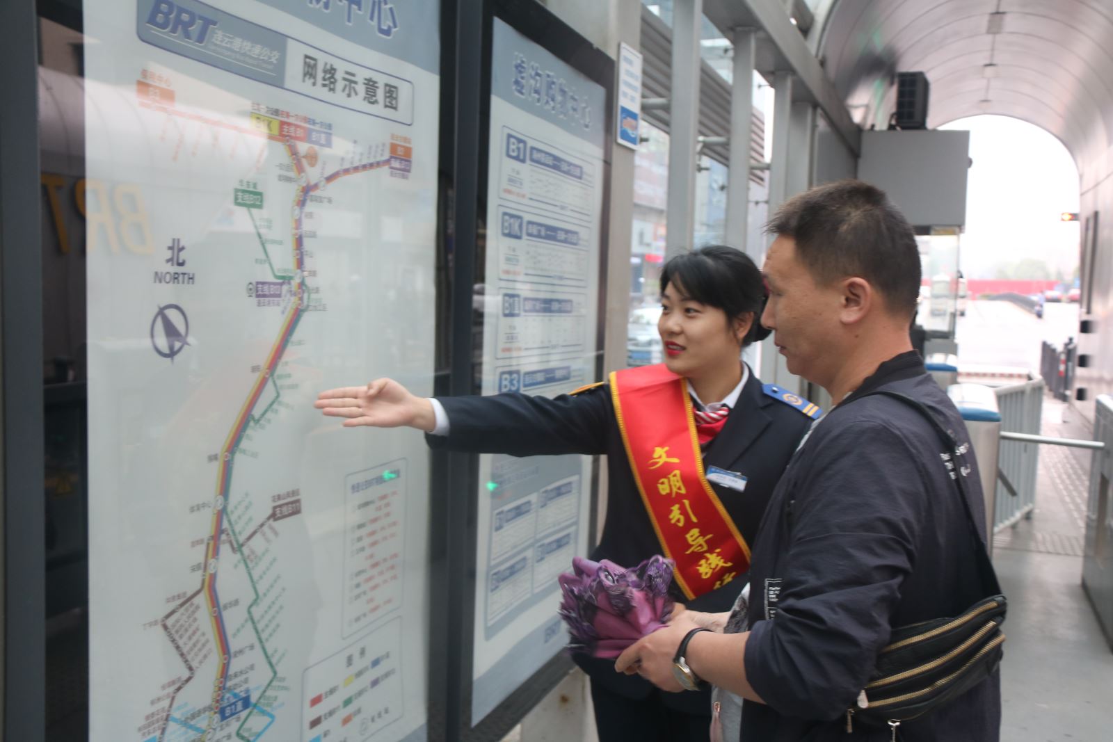 公交集團(tuán)快速公交事業(yè)部BRT一號(hào)線(xiàn)站務(wù)班組包括10個(gè)小組,成立于2012年10月,現(xiàn)有站務(wù)員146名,工作在BRT一號(hào)線(xiàn)56個(gè)站臺(tái),其中共產(chǎn)黨員1名、共青團(tuán)員19名,“與雷鋒車(chē)同行示范崗”5對(duì),2017年BRT一號(hào)線(xiàn)全線(xiàn)站臺(tái)被連云港市文明辦授予“文明示范站”。站務(wù)班組堅(jiān)持踐行社會(huì)主義核心價(jià)值觀,將雷鋒車(chē)精神發(fā)揚(yáng)到站臺(tái),自成立以來(lái),拾金不昧、樂(lè)于助人、甘于奉獻(xiàn)等好事層出不窮,據(jù)統(tǒng)計(jì)好人好事5000余件,錦旗18面。