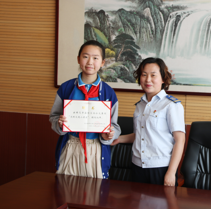 5月30日,江蘇省交通運(yùn)輸廳黨組成員、副廳長金凌,廳副巡視員、機(jī)關(guān)黨委書記陳萍 , 連云港市人民政府副市長陳書軍及市公交集團(tuán)黨委書記、總經(jīng)理周文君一行來到海寧小學(xué)看望范夢(mèng)茹同學(xué),聘請(qǐng)她為“江蘇‘文明交通文明出行’形象使者”,并通過開展主題班會(huì)的形式向同學(xué)們發(fā)出文明交通、文明出行的倡議,現(xiàn)場(chǎng)也對(duì)公交集團(tuán)駕駛員李方毅進(jìn)行了慰問獎(jiǎng)勵(lì)?;顒?dòng)后,公交集團(tuán)也向范夢(mèng)茹同學(xué)發(fā)出邀請(qǐng),聘請(qǐng)她為公交集團(tuán)“文明交通小使者”,為她送上了聘書與小禮物。