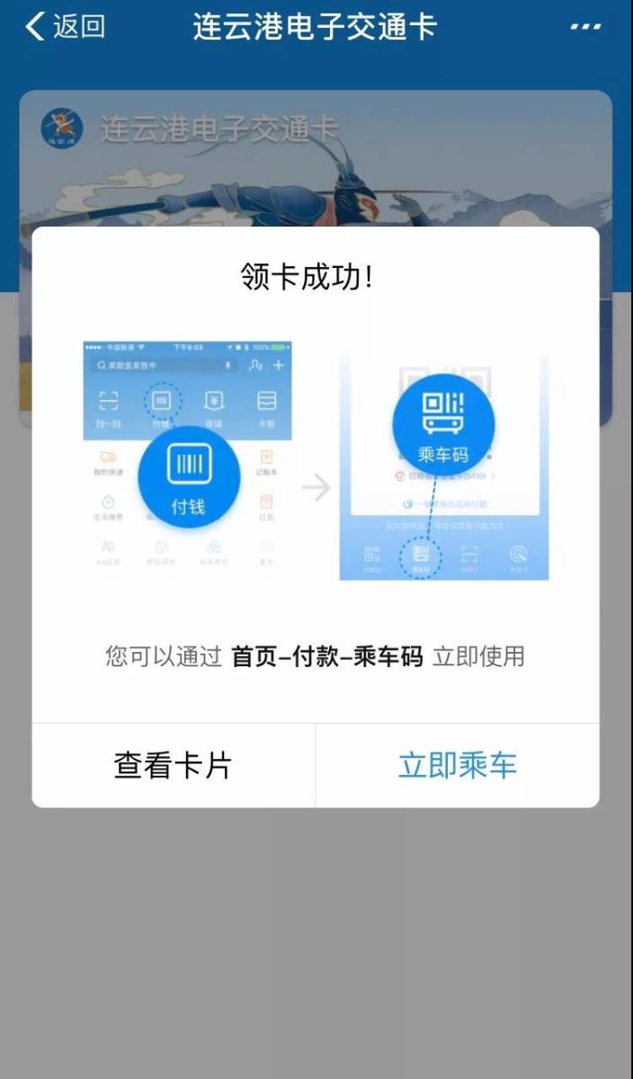 點擊“立即領(lǐng)卡”后,便可使用乘車碼掃碼乘車。