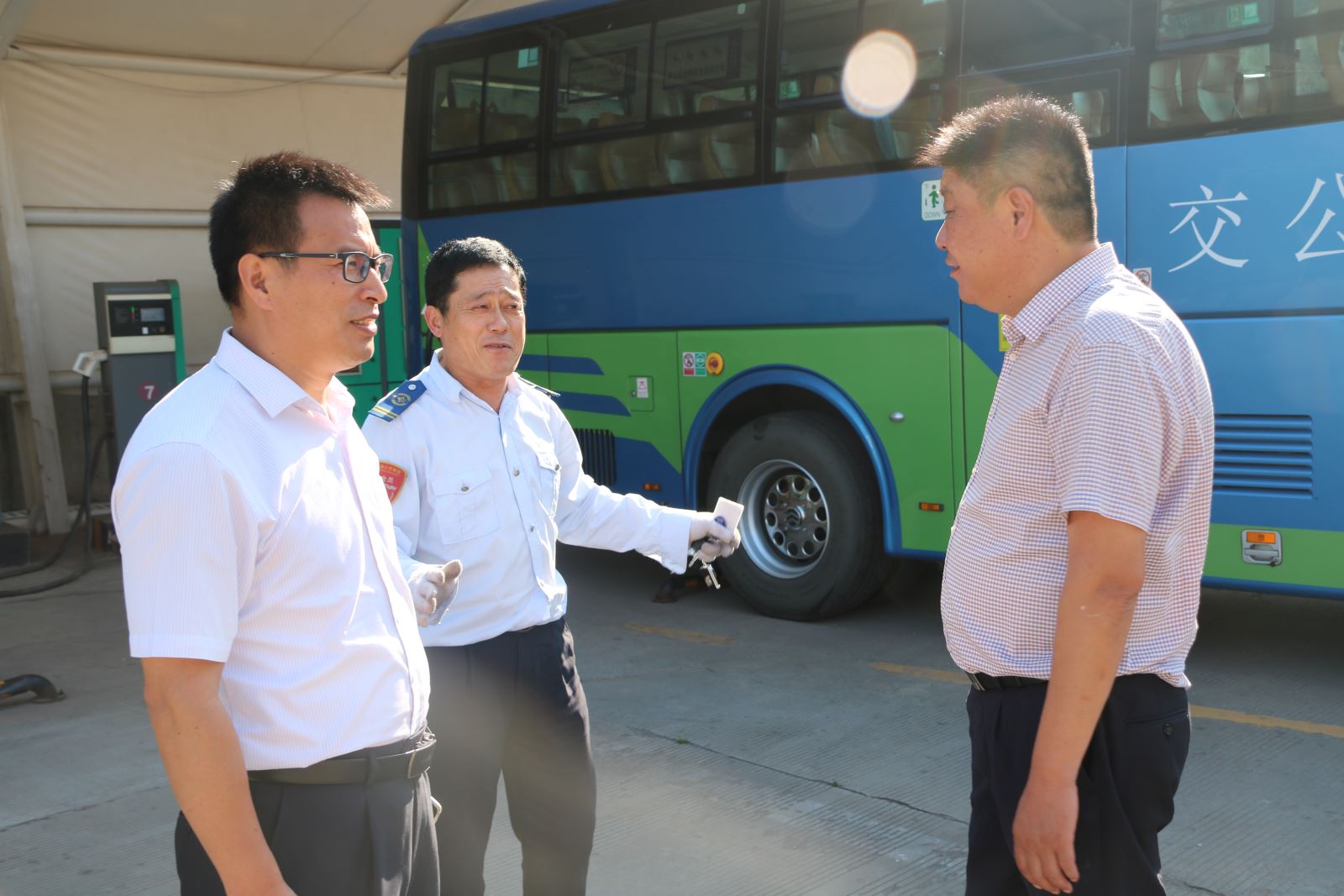 為確保創(chuàng)文工作順利開展,7月10日,公交集團(tuán)黨委書記、總經(jīng)理周文君及領(lǐng)導(dǎo)班子成員上路上線對海州客運(yùn)站、連云古鎮(zhèn)等線路開展創(chuàng)文檢查工作,檢查內(nèi)容包括:場站衛(wèi)生、車容車貌、車內(nèi)安全設(shè)施完善情況、文明宣傳標(biāo)識張貼是否到位、站臺衛(wèi)生、駕駛員服務(wù)規(guī)范等。