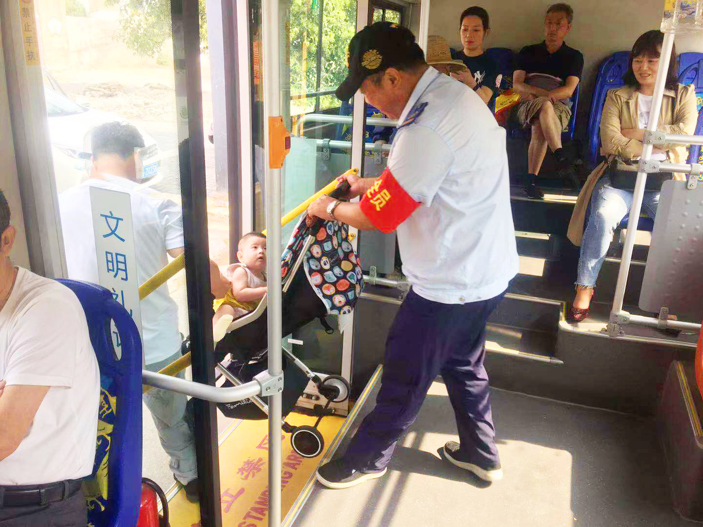 為緩解客流壓力,公交集團(tuán)對(duì)22路、B12線、6路、游2路等客流量多的19條重點(diǎn)線路,在上下班的高峰期時(shí)段,派駐安全員進(jìn)車廂,協(xié)助駕駛員查堵易燃易爆、有毒、管制道具等危險(xiǎn)物品、引導(dǎo)乘客有序上車投幣刷卡,扶老攜幼,幫助老年乘客安全乘車、督促駕駛員安全行車、文明駕駛。一旦發(fā)生意外情況,積極協(xié)助駕駛員做好應(yīng)急處置措施,維護(hù)乘客的人身安全。