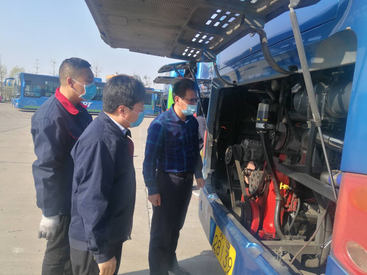 領(lǐng)導(dǎo)班子成員仔細(xì)查看了場站內(nèi)18米車的車況,重點檢查了車輛發(fā)動機(jī)艙、剎車及打氣泵等位置,對18米車的修舊利廢、修理工作進(jìn)行了現(xiàn)場指導(dǎo)。周總對加氣站所在區(qū)域的安全距離提出具體部署:加氣站周圍50米內(nèi)要保持安全距離,禁止停放任何車輛,場站內(nèi)私家車及運營車輛必須規(guī)范停放。
